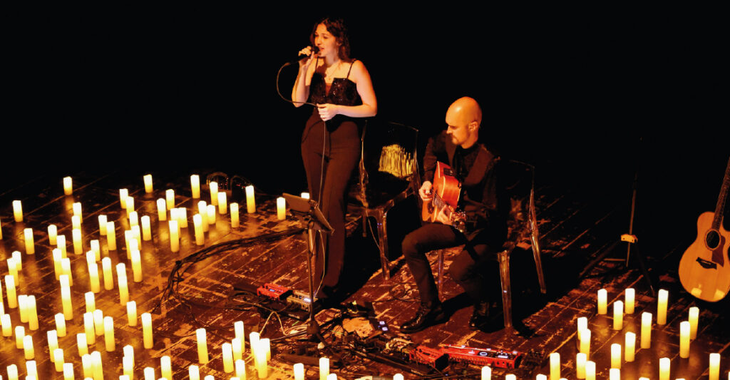 Un progetto fuori dal comune: voce e chitarra si intrecciano con arrangiamenti creati dal vivo grazie alla magia del LIVE LOOPING, trasportando il pubblico in un viaggio sonoro intimo e sorprendente. Il tutto avvolto dalla suggestiva atmosfera del teatro, illuminato da un mare di candele.