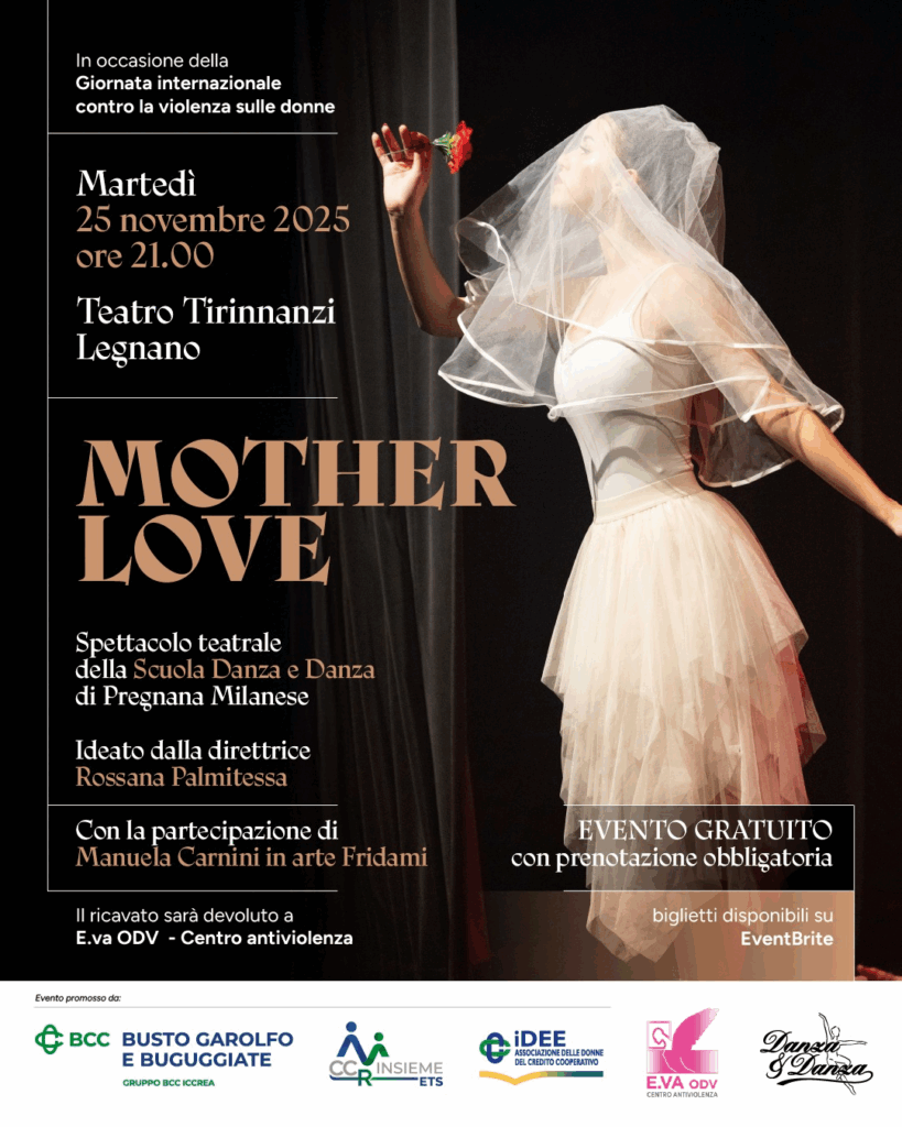 Le giovani danzatrici della scuola “Danza e Danza” di Pregnana Milanese si esibiranno nello spettacolo “Mother Love”, un percorso coreografico che racconta le fasi dell’amore, del dolore e della rinascita femminile. Ogni gesto, ogni parola, ogni passo di danza saranno un atto d’amore.