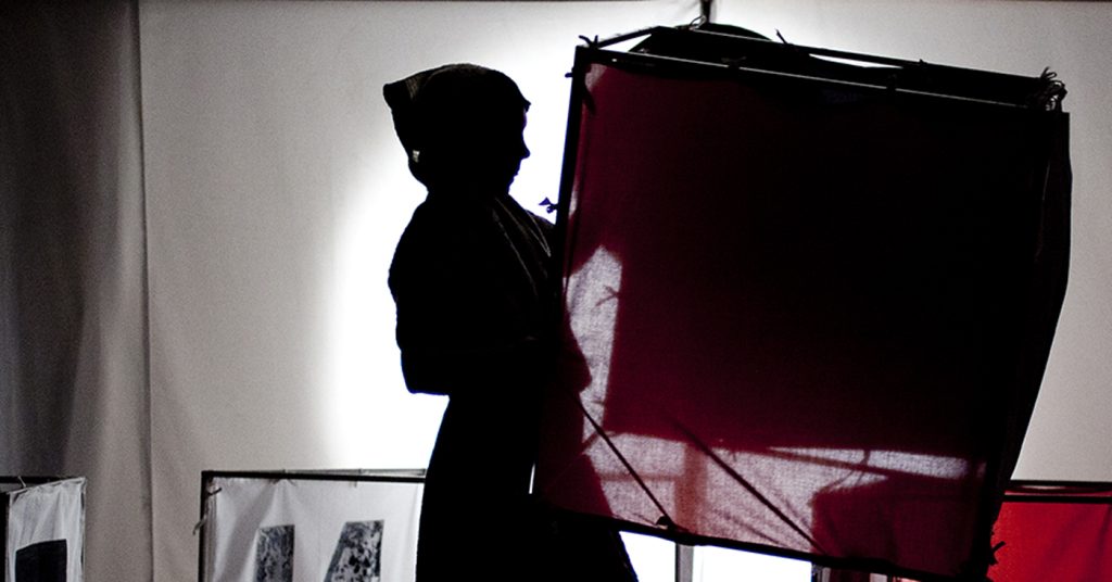 Sul palco i grandi cubi con lettere ci riportano ai nostri giochi di bambini e a come semplicemente sapevano meravigliarci. Queste figure si scompongono e ricompongono animando una scenografia minimale ed evocativa che, tra luci e ombre, lascia spazio all’immaginazione dello spettatore. La parola “eternità” composta da queste forme, come nella fiaba, è un invito a riscoprire il nostro mondo come farebbe un bambino.
