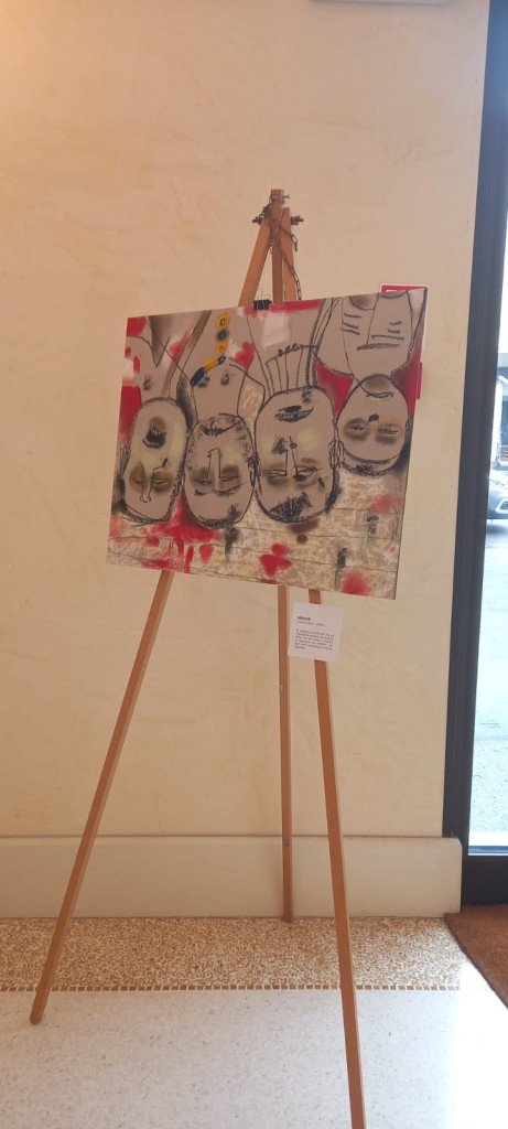 Questo fa l’arte, ci dà la speranza che nulla sia vano e che si possa trasformare qualunque cosa. Possiamo trasformare un conflitto in un atto di pace? All’uscita da teatro, dopo aver condiviso quei momenti di profonda umanità, credo che ognuno dei presenti abbia immaginato che quella possibilità, seppur remota ci sia, e abbia deciso in cuor suo di metterla in pratica. Ringrazio Vittoriano Ferioli per questa grande occasione che ha dato domenica mattina a tutti i presenti e che darà a tutte le persone che vorranno venire a visitare la mostra NON C’E’ PACE da qui all’11 Maggio.